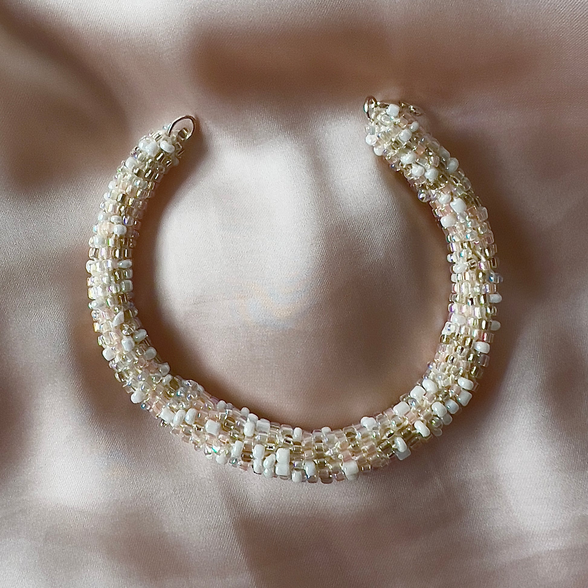 Each bracelet is meticulously crocheted by hand — a slow, detailed process guiding thousands of tiny beads into smooth, seamless rounds. Lightweight, flexible, and made for effortless wear.