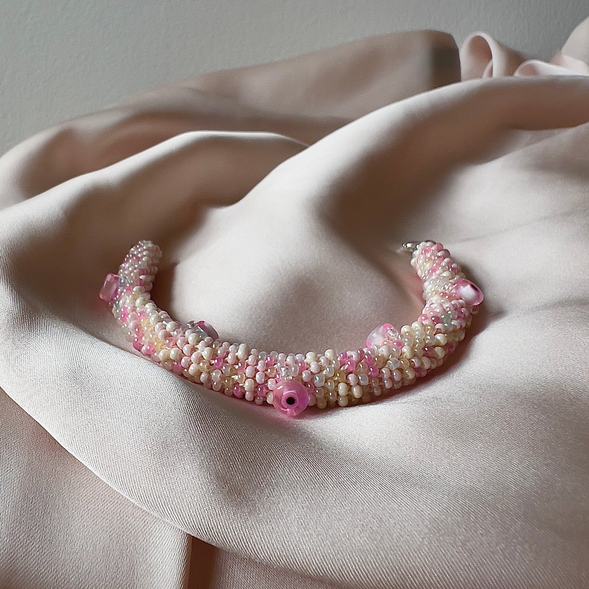 Each bracelet is meticulously crocheted by hand. This slow, detailed process guides hundreds of tiny beads into smooth, seamless rounds. The result is a bracelet that is lightweight, flexible, and made for effortless wear.